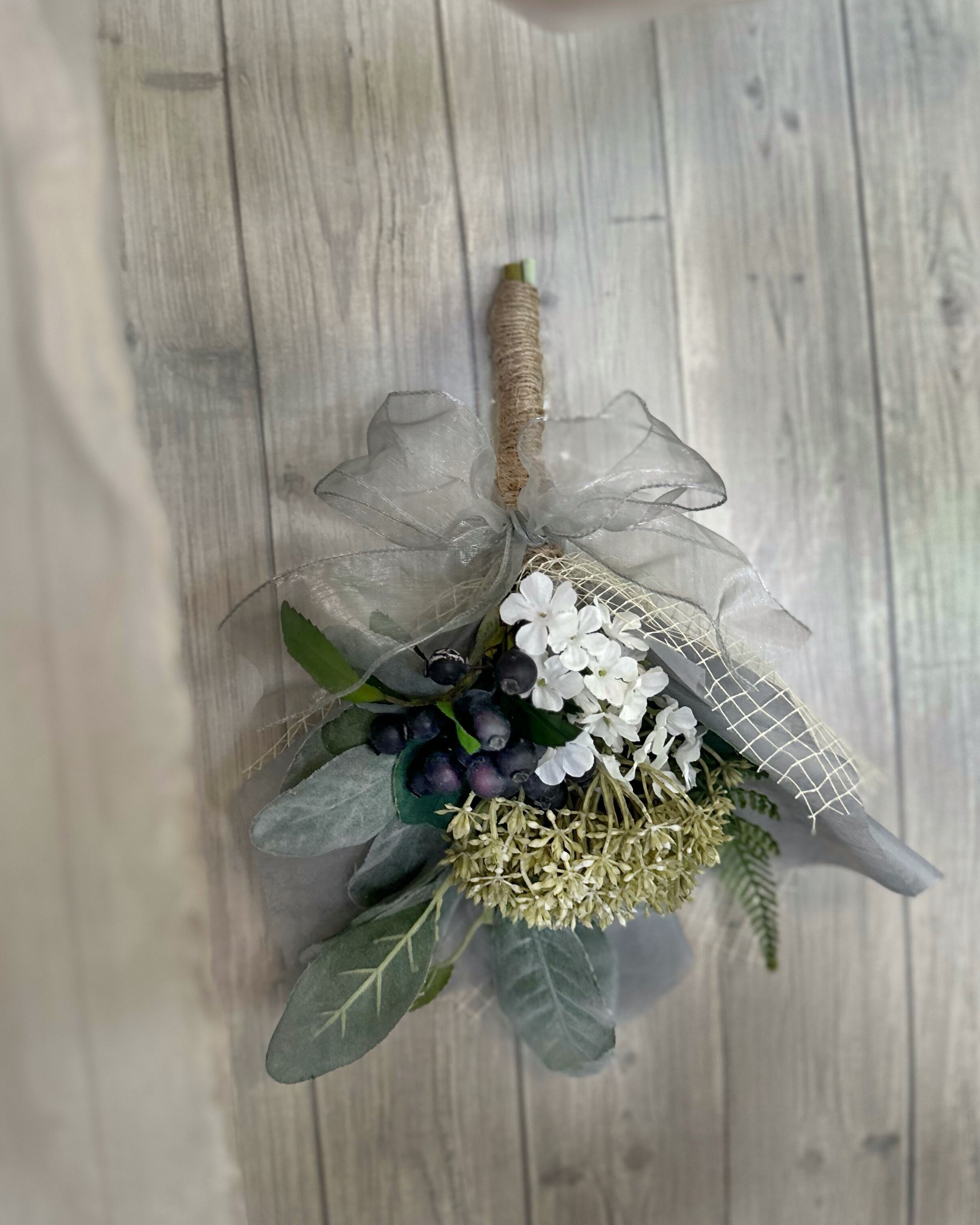 可憐な花々が贈る、幸せの彩り。花言葉はあなたに幸せをもたらすと言われるブルーベリーが中心です。自分へのご褒美や、大切な人への贈り物にぴったりの花束です。幸せなひとときを花々と共に過ごし、心豊かな人生を歩んでください